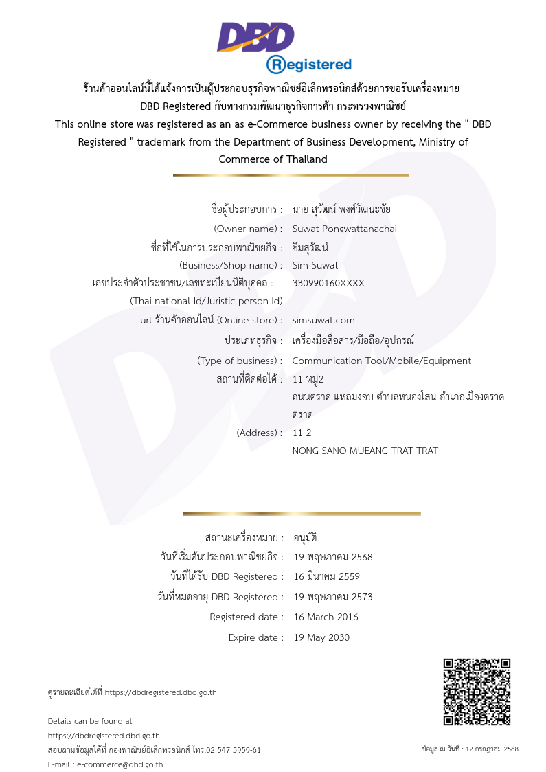 เพราะร้านเราได้จดทะเบียนร้านค้าพาณิชย์อิเล็กทรอนิกส์อย่างถูกต้อง
